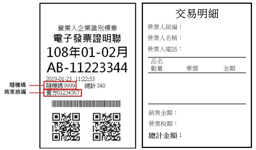 電子發票證明聯及交易明細示意