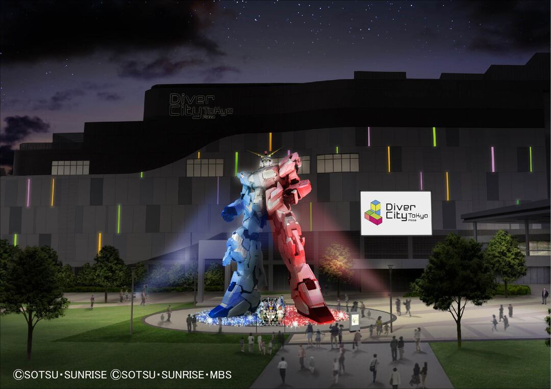 12月2日(五)~2023年2月19日(日)期間,「DiverCity Tokyo 購物中心」2樓Festival廣場的與實務等身大的獨角獸鋼彈立像,正在實施冬季限定22-23ver點燈活動。