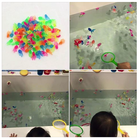 日本在節慶的時候都會有撈金魚的遊戲,但是不殘害小動物,所以就做了擬真的金魚。其實這在台灣之前也有很多人團購,當時沒有找到配合的廠家,阿卡獎還沒1歲的時候我就買了一組給他玩,玩到現在快3歲還是很喜歡~繽紛的金魚在水裡面其實真的很賞心悅目,我幫大家訂了比較厚的網子(紙),這樣小朋友可以體會撈金魚的樂趣,當時我買的時候還沒有另外附網子。