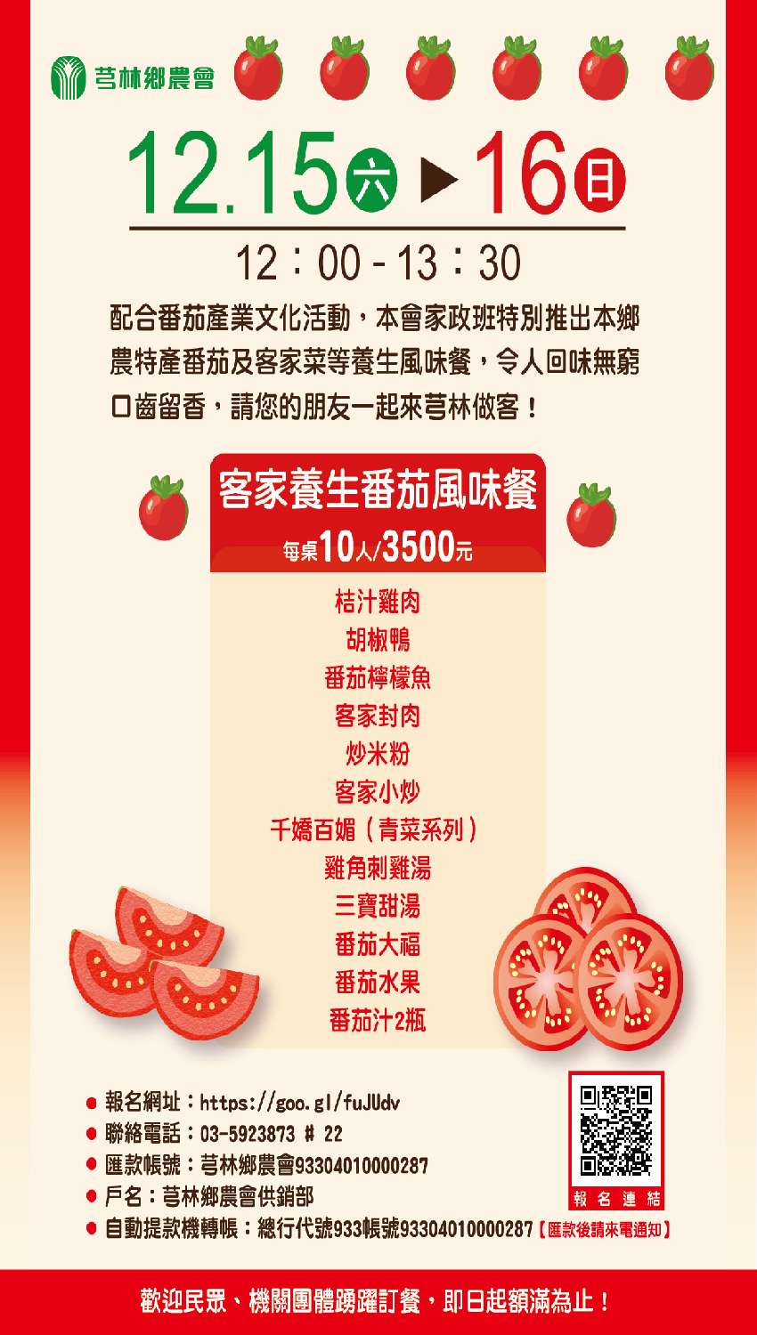 12/15-16(六日)中午12點【客家養生風味餐】NT3,500/桌
