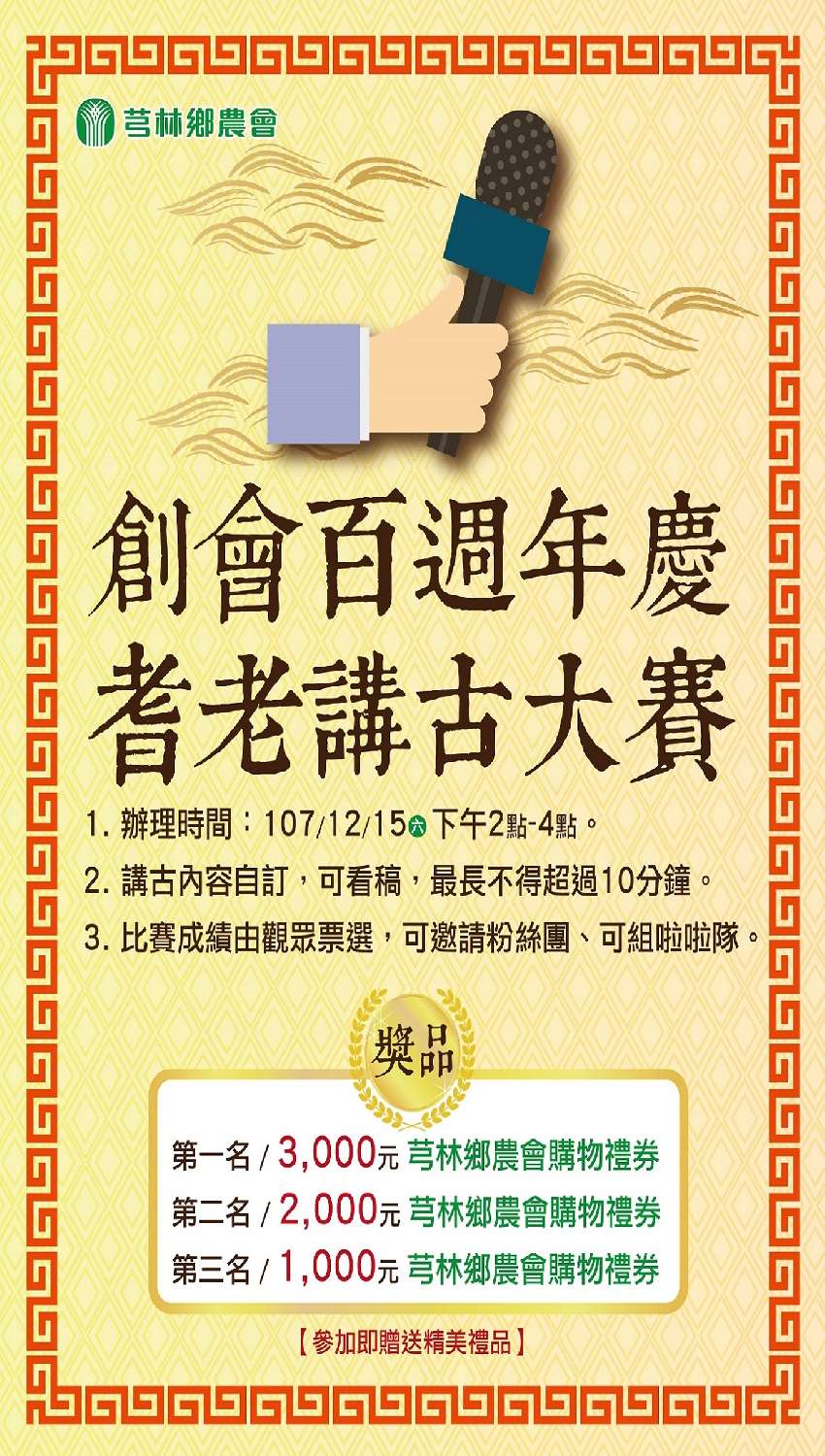 12/15(六)下午2-4點【百週年慶耆老講古大賽】免報名費