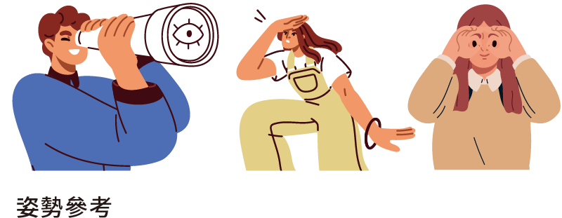 步驟1:發揮創意擺出各式「尋找」姿勢,與吉祥物鷗霸合照