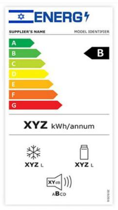 能源標籤要求與歐盟基本相同,差異僅在以色列國旗取代歐盟圖示,且不須放上QR code。