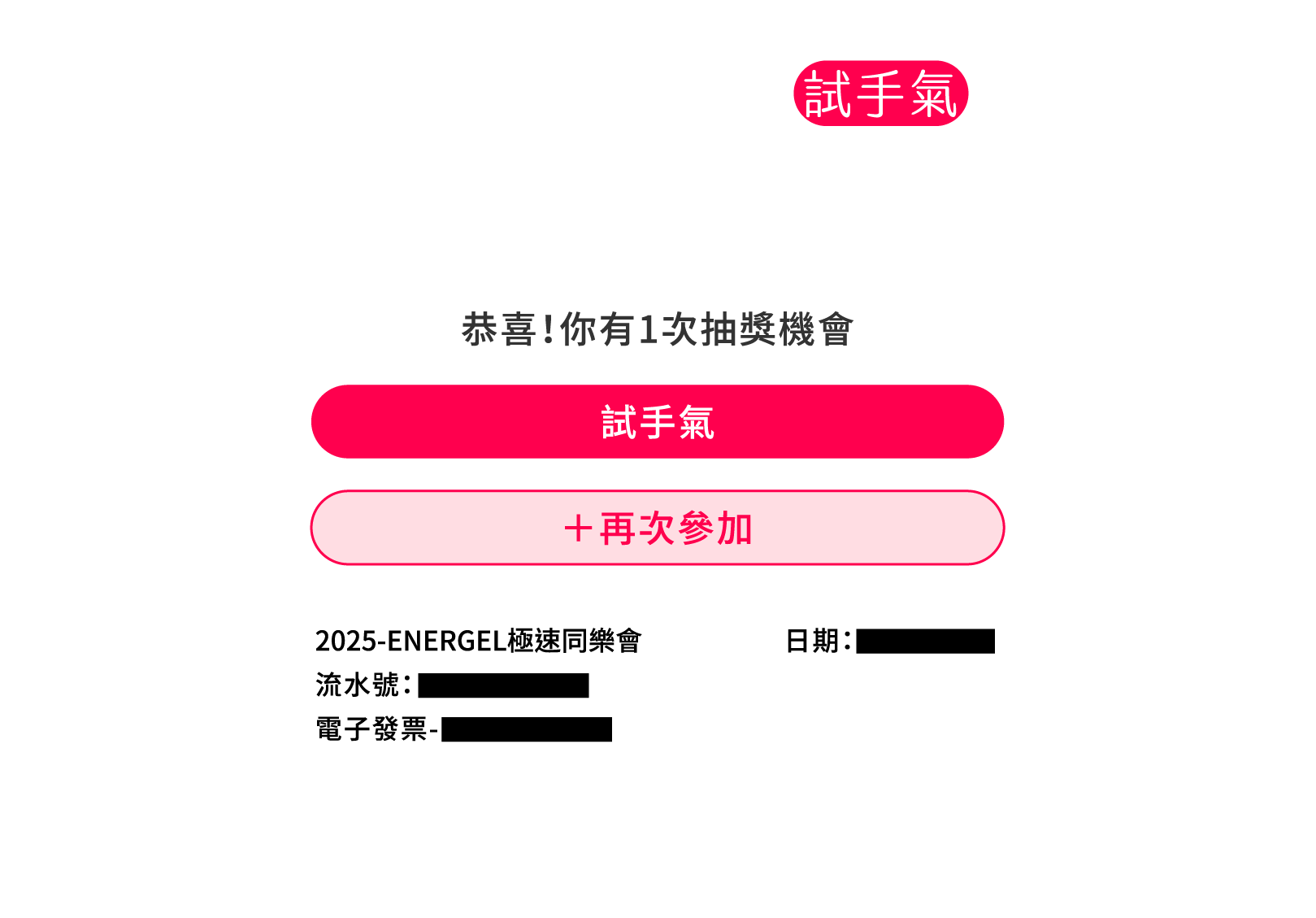 4.登錄發票號碼、日期、金額需與發票正本相符,請務必保留中獎之紙本正本發票(含明細),中獎後提供主辦及執行單位方審核,若遺失正本視為放棄中獎資格。