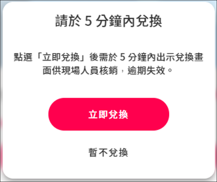 3.點擊立即兌換並出示畫面