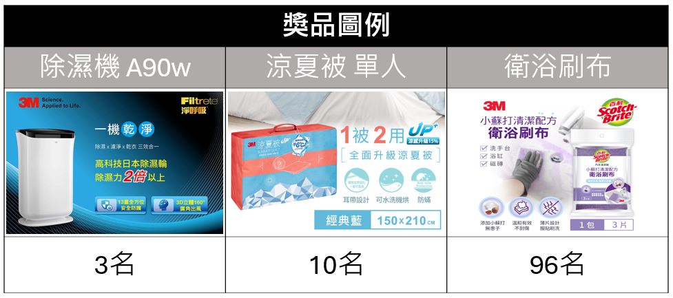 中獎者部分:中獎人所提供中獎收據上所填之個人基本資料,用途只限領取獎項及申報個人所得使用;台灣明尼蘇達礦業製造股份有限公司依據稅法規定本收據最長保存7年,屆時銷毀,不轉移作其他用途。