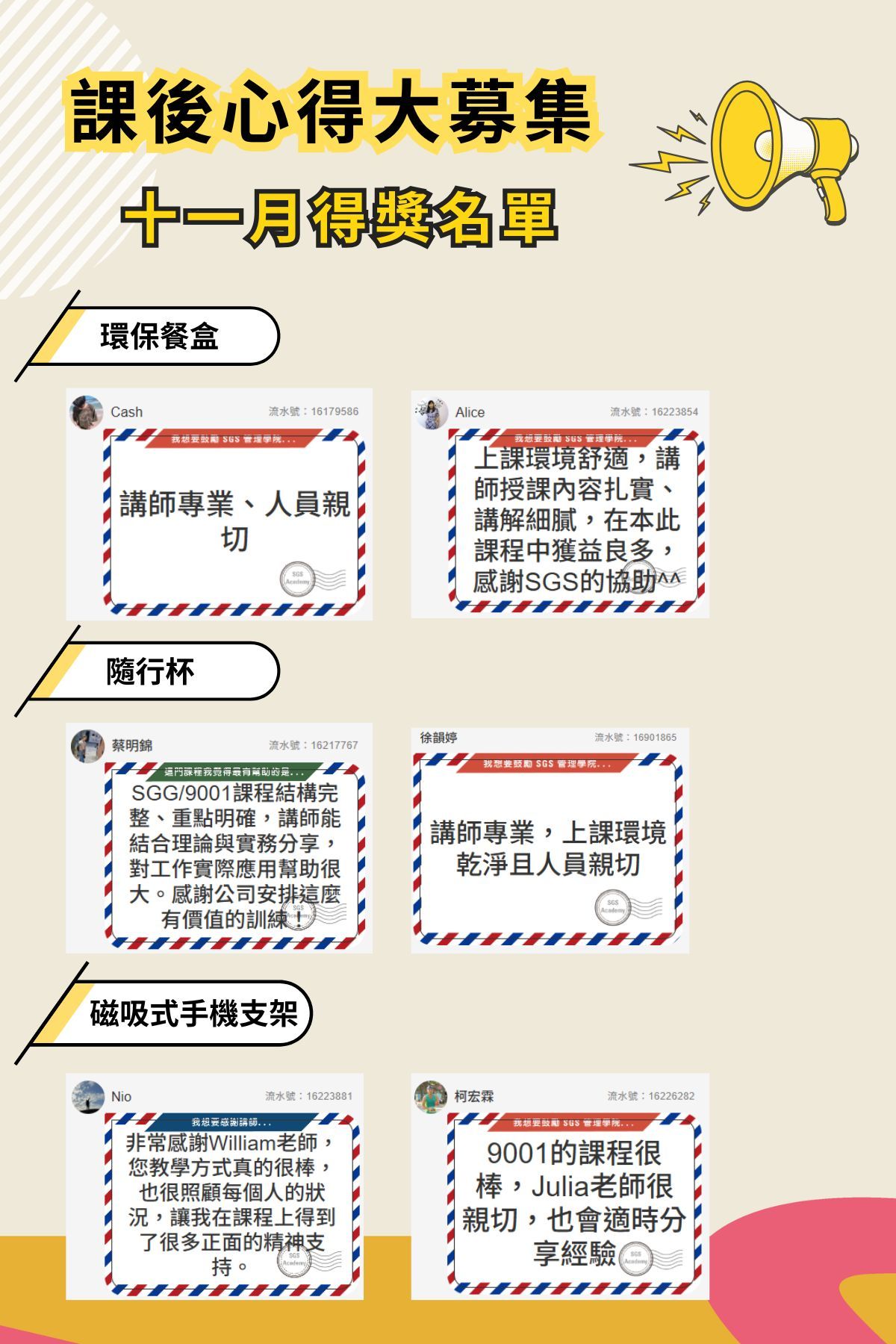 如果未收到得獎通知信件,請來信寄至 claire-tf.chang@sgs.com