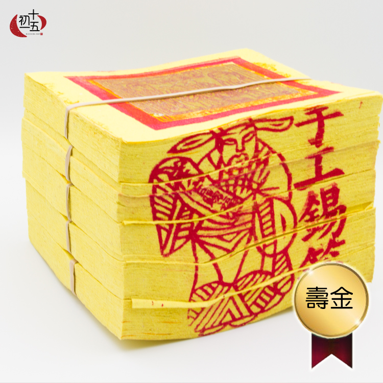 而初一與十五,傳統敬拜神明金紙不外乎〈四色金〉或〈五色金〉,四色是大百壽金與壽、刈、福金,無論是拜觀音、關公、媽祖、文昌帝君、財神爺、祖師爺、土地公都可以;而五色金則多一份大百天金,適合去拜天公、三官大帝與三寶佛祖。