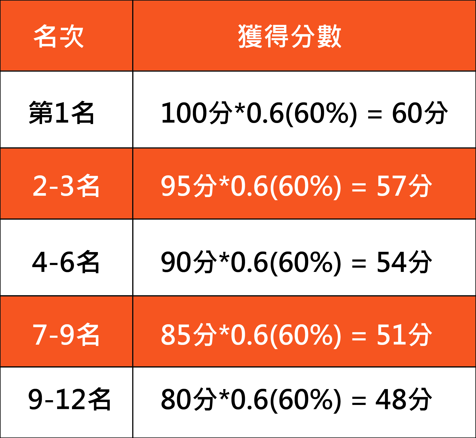 組距分數如下: