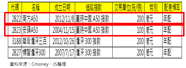 A50 ETF、A+H權值股、證券、 內地銀行、保險