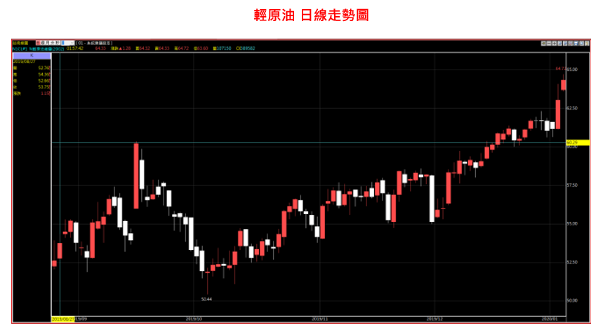 以上總總衝突事件,令黃金原油一舉突破近一年壓力,2020年開年即突破2019年壓力區間,黃金也同步大漲,突破壓力,預期再衝突持續的情況,黃金原油後市欲小不易,但後市仍須注意,如美伊問題告終,油金則可能同步拉回,而在股市部分,近期美盤於高檔位置出現長黑,由於美股2019年已有不小漲幅,如國際事件問題,令避險情緒上升,美股後市能否持續突破,應謹慎看待。而本週五(1/10)將迎來新年第一次非農就業數據,預計將造成市場波動。