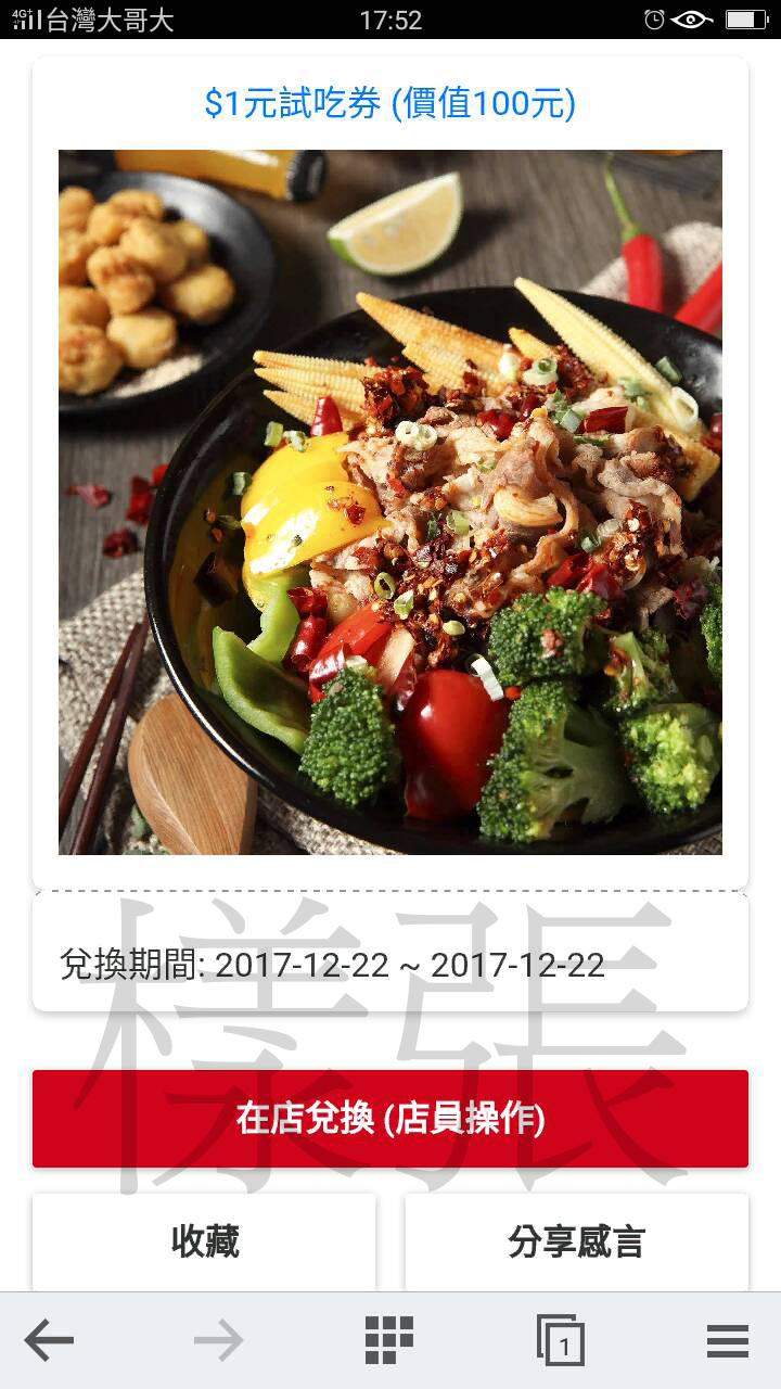步驟3. 公開分享至個人塗鴉牆上,即代表報名成功。 即可得到【$1元試吃電子票券乙張】價值100元。