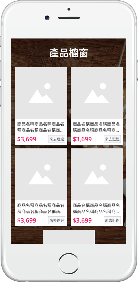 用 40 個商品做為他一個頁面的商品數量基礎 (5 個分類各有 8 個品項),產品櫥窗模組可以幫他用最短的時間完成「上架」。