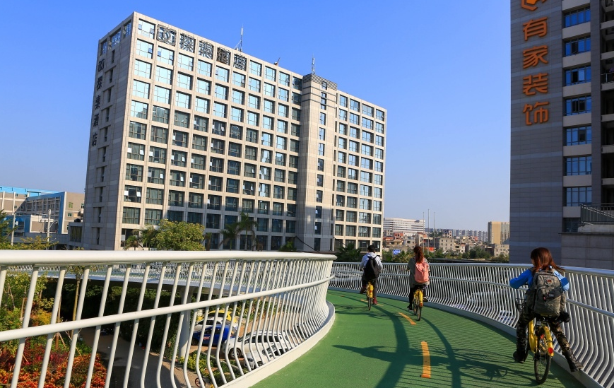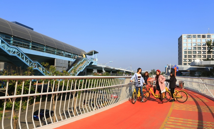 但是你們知道嗎?除了地面單車外,廈門還有全世界最長,全中國唯一的“空中自行車道”,這條空中自行車道起自BRT洪文站,終點設在BRT縣後站,周圍BRT而建,距離大約7.6公里,設有11處出口,每個出口皆有停車平台可停放自行車,且與BRT站,地面自行車道和公車站相銜接,未來地鐵完工後,即將與兩個地鐵站相通,相當方便。