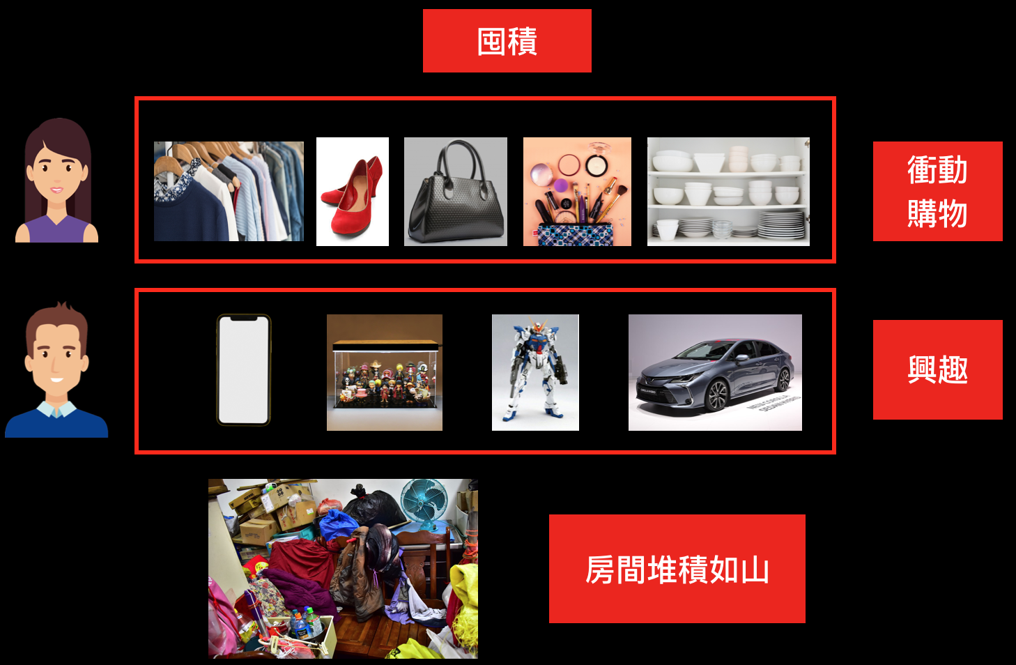 囤積=衝動購物+興趣+=房間堆積如山