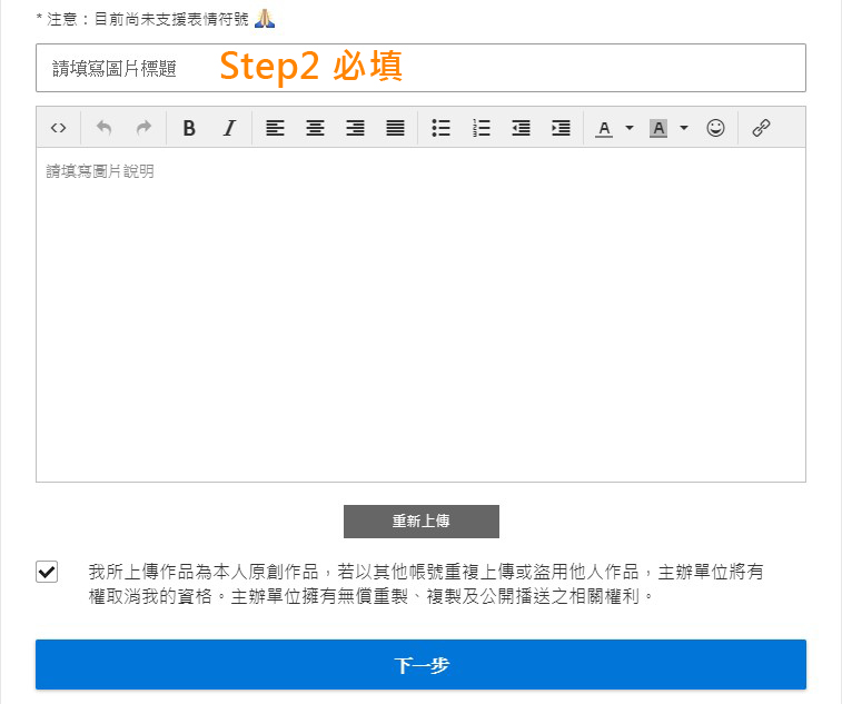在上傳的照片下方,輸入圖片標題。