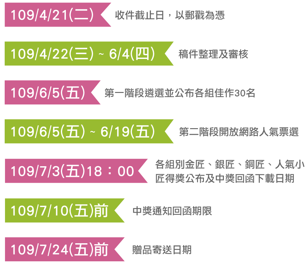 ※ 獎項名額可視參選作品狀況及評選標準議定,得從缺。