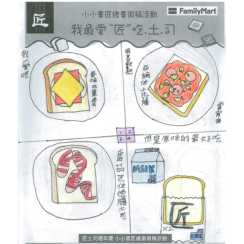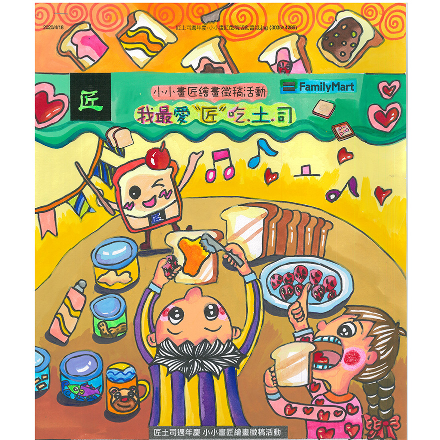 - 得獎資格:活動期間(109/03/25~109/04/21)內徵稿對象參與全家匠土司週年慶小小畫匠繪畫徵稿活動並透由全家便利商店股份有限公司、IF OFFICE 馮宇設計師、網路人氣票選評選出最終得獎者 。