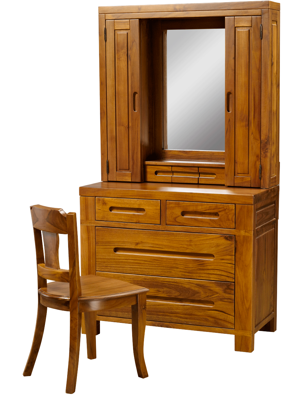 化妝台抽屜、側邊、桌腳上方的精緻雕刻,