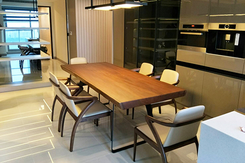 餐桌的質地要講究,選擇色調溫和、觸感溫暖的質地較佳。像大理石與玻璃等桌面較為堅硬、冰冷,其易吸收人體能量,不利於就餐者的坐談交流。建議使用木頭質地的餐桌,會給家人帶來較正面良好、溫暖幸福的能量。