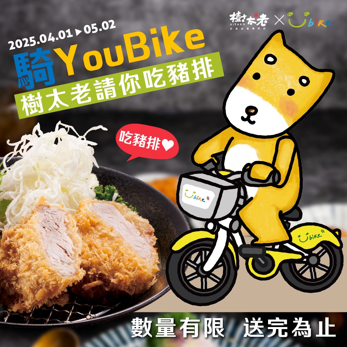 我是小小畫家活動期間出示YouBike官方APP騎乘紀錄,到樹太老店內點選任一定食,即贈小腰內豬排 乙份,數量有限送完為止。