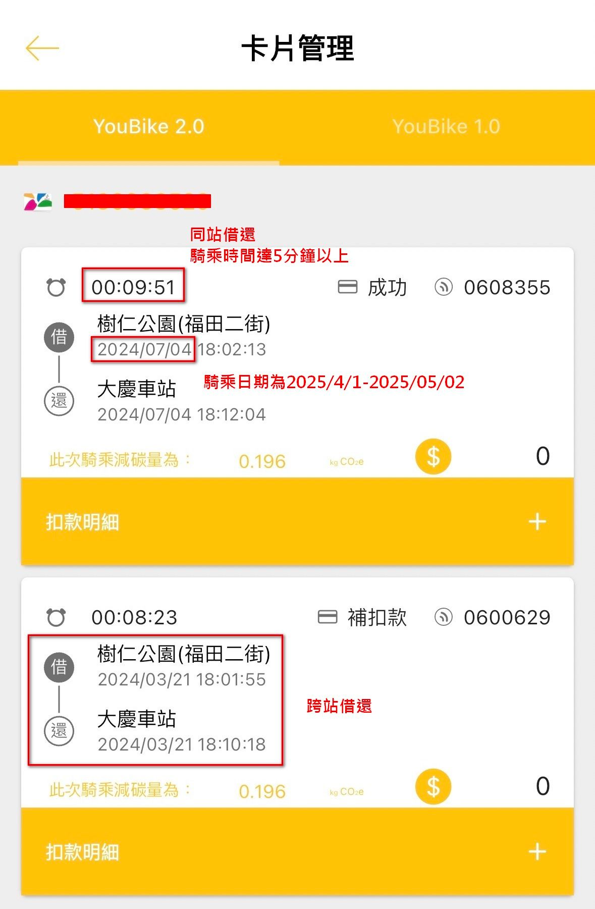 ※騎乘紀錄須「同站借還5分鐘(含)以上」或「跨站借還」才符合兌換資格。