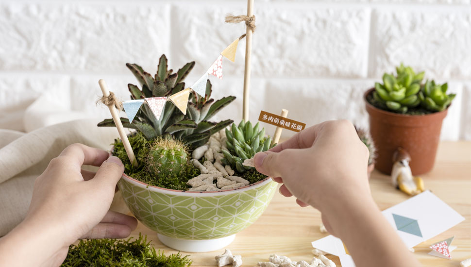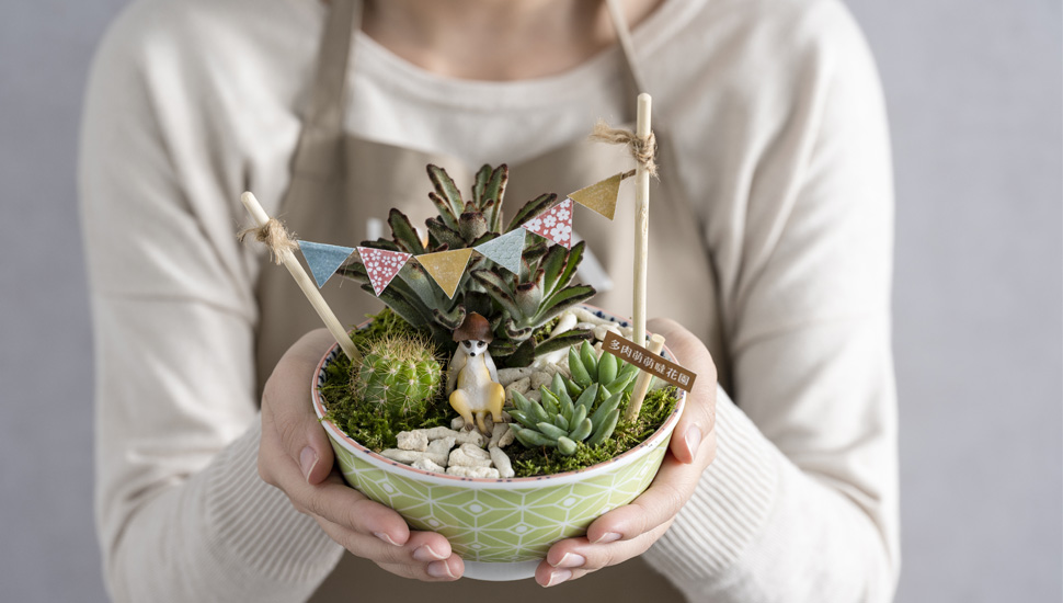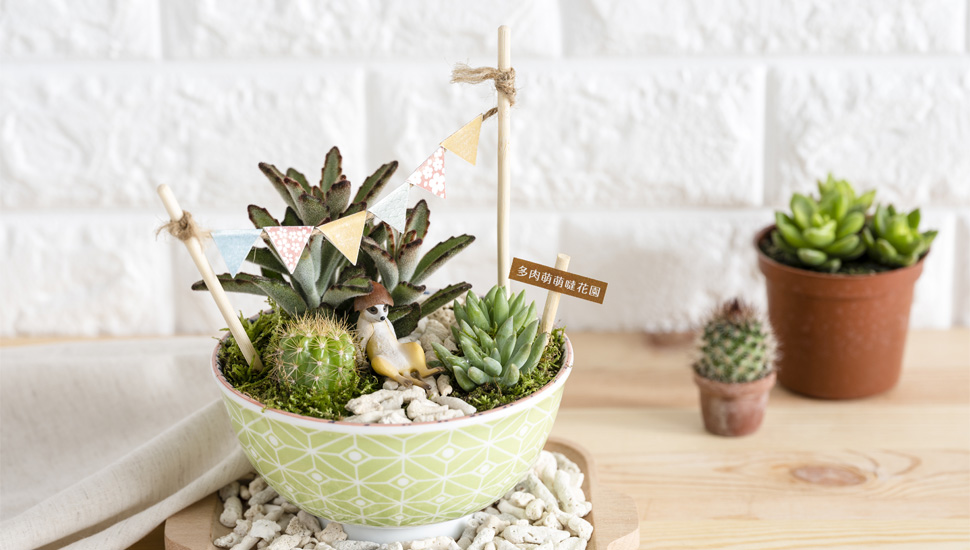 萌萌噠多肉們,隨意組裝,插上小旗幟、鋪上石頭路,就能創造專屬的秘境花園。