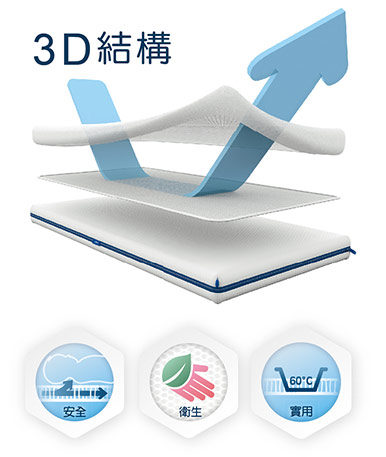 *安全睡眠保護墊融合創新的3D科技和經典的保潔墊設計,同時保護寶寶和床墊。