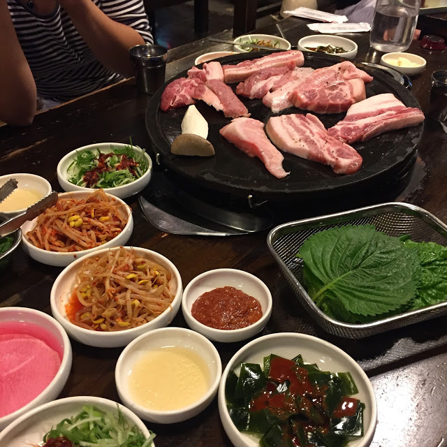 逛完東門市場後不妨散步到濟州島著名的黑豬肉一條街,島上最具代表性的美食就是黑豬肉,來濟州島一定要吃一下黑豬肉烤肉配燒酒!