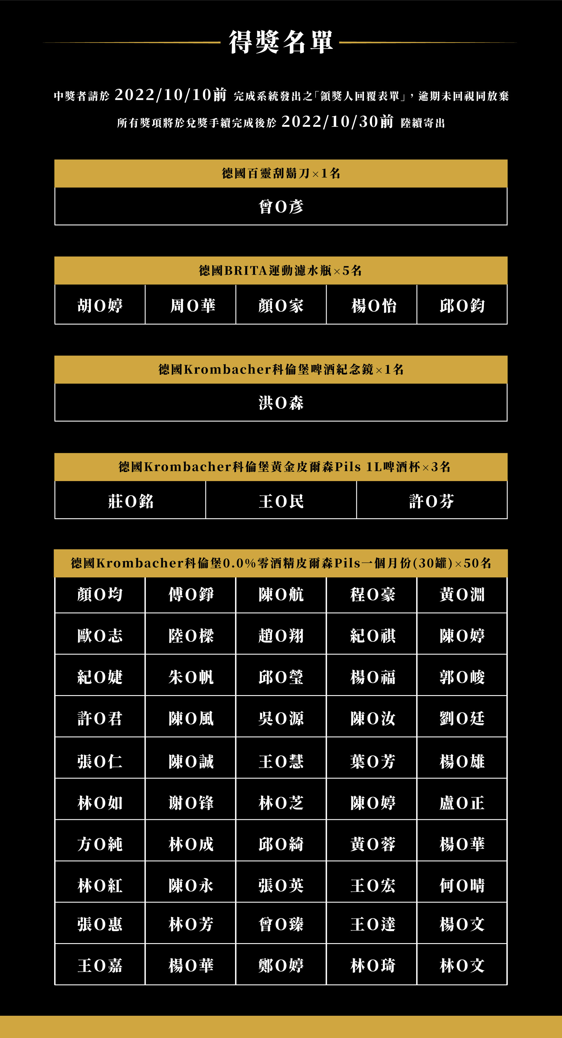 (3).所有獎項將於兌獎手續完成後於2022/10/30前陸續寄出,得獎者亦不得異議。
