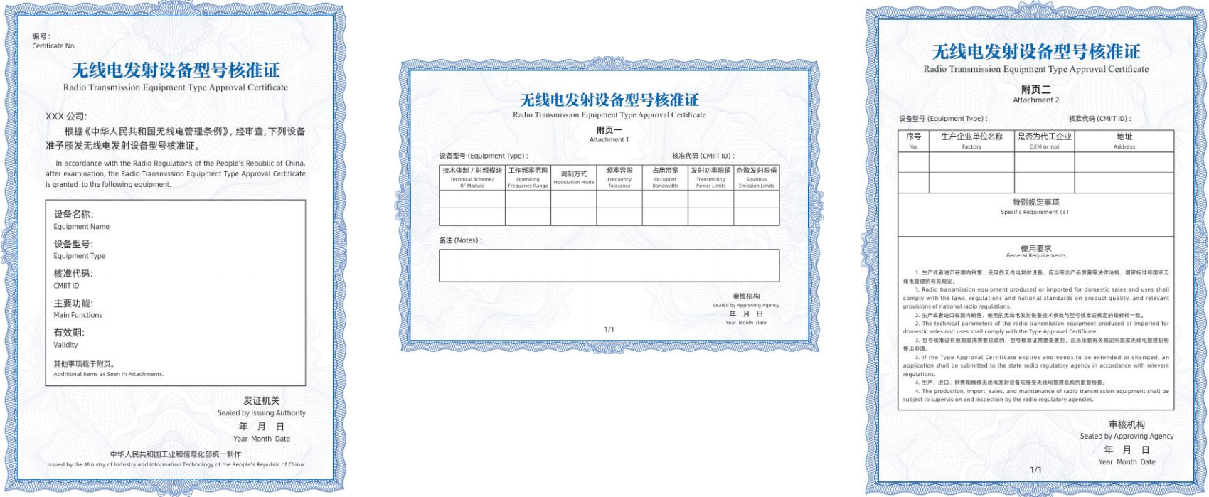 工業和資訊化部辦公廳修訂發佈了新版《無線電發射設備型號核准證書樣式》及《無線電發射設備型號核准代碼編碼規則》,自2023 年 12 月 1 日起施行。