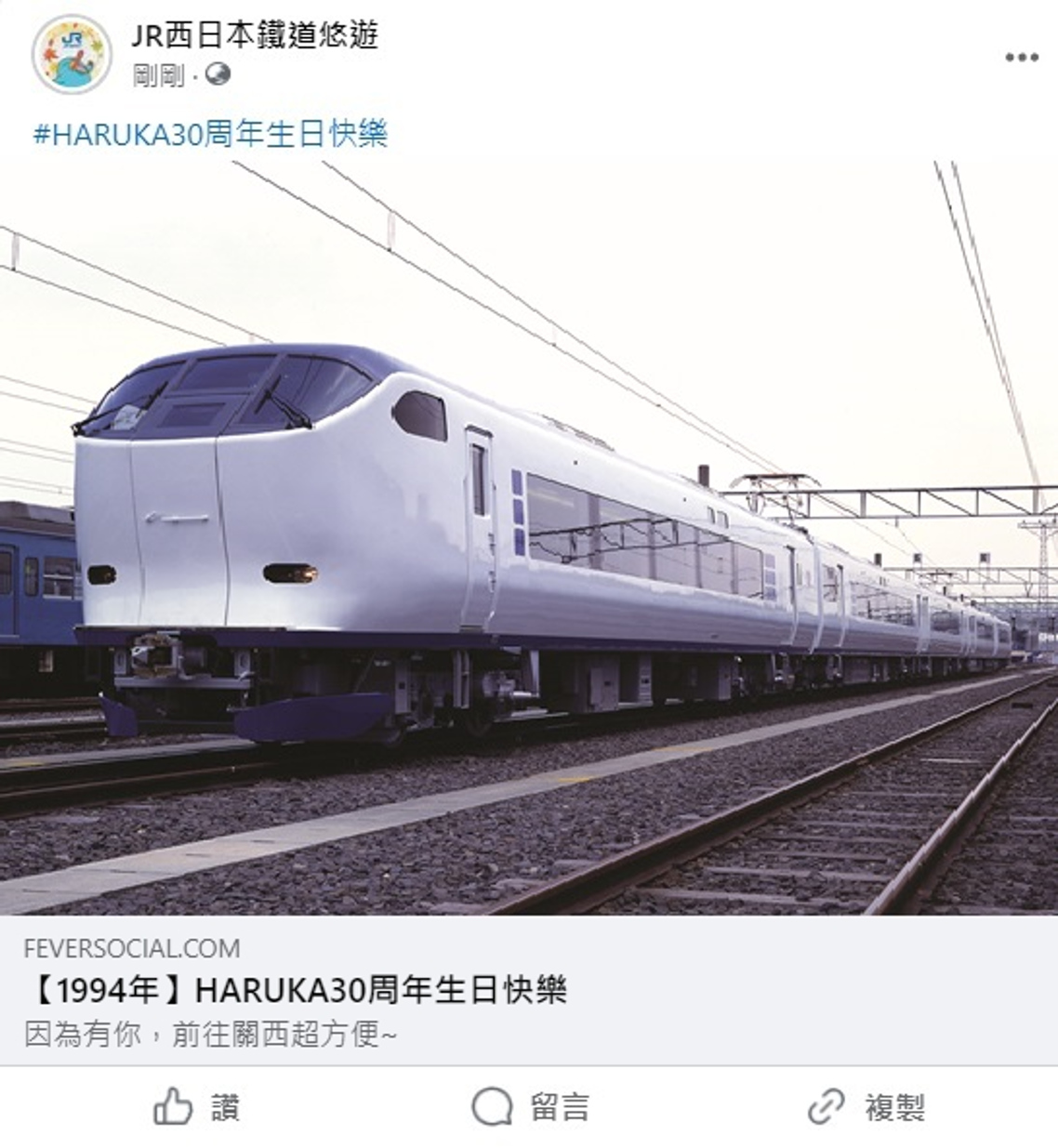 按讚追蹤JR西日本官方臉書粉絲專頁「JR西日本鐵道悠遊」