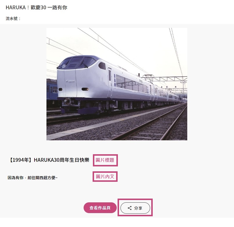 當參加者參加本活動並提供個人資料時,即視為參加者已瞭解上述相關內容,並同意JR西日本台灣事務所及代理廣告公司J&T CONTENTS蒐集、處理及利用參加者的個人資料。