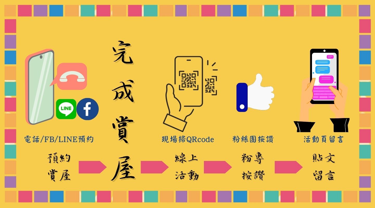 1.以(電話/FB/LINE)預約方式至活動中指定案場預約安排賞屋(僅限首次參觀客戶且2人以上同行),於預約時間列場完成賞屋程序 ❶掃QRcode參加線上活動 ❷FB粉絲團按讚+活動貼文留言,即可獲得新光三越300元禮券。(須出示身份証證件以利現場人員影印後申報核實,若無法提供證件,則無法領取禮卷)。