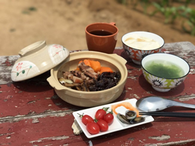 面對夏日烈陽與冬日東北季風,澎湖人創造了屬於自己的飲食文化。我們找回古早有機的種植概念,珍惜土地上的蔬果;我們端上從奶奶到媽媽,一代又一代傳家的滋味-日曬海洋套餐,以極具古早風味的石鮔(章魚)燉肉和糖炒臭肉魚干,再搭配自家農地種植的有機時蔬,以及澎湖風味飲品-仙人掌果汁、手工豆花、澎湖特色小菜和湯品的組合,獻給所有來享用的旅客。最道地的澎湖味,是我們對您的款待。