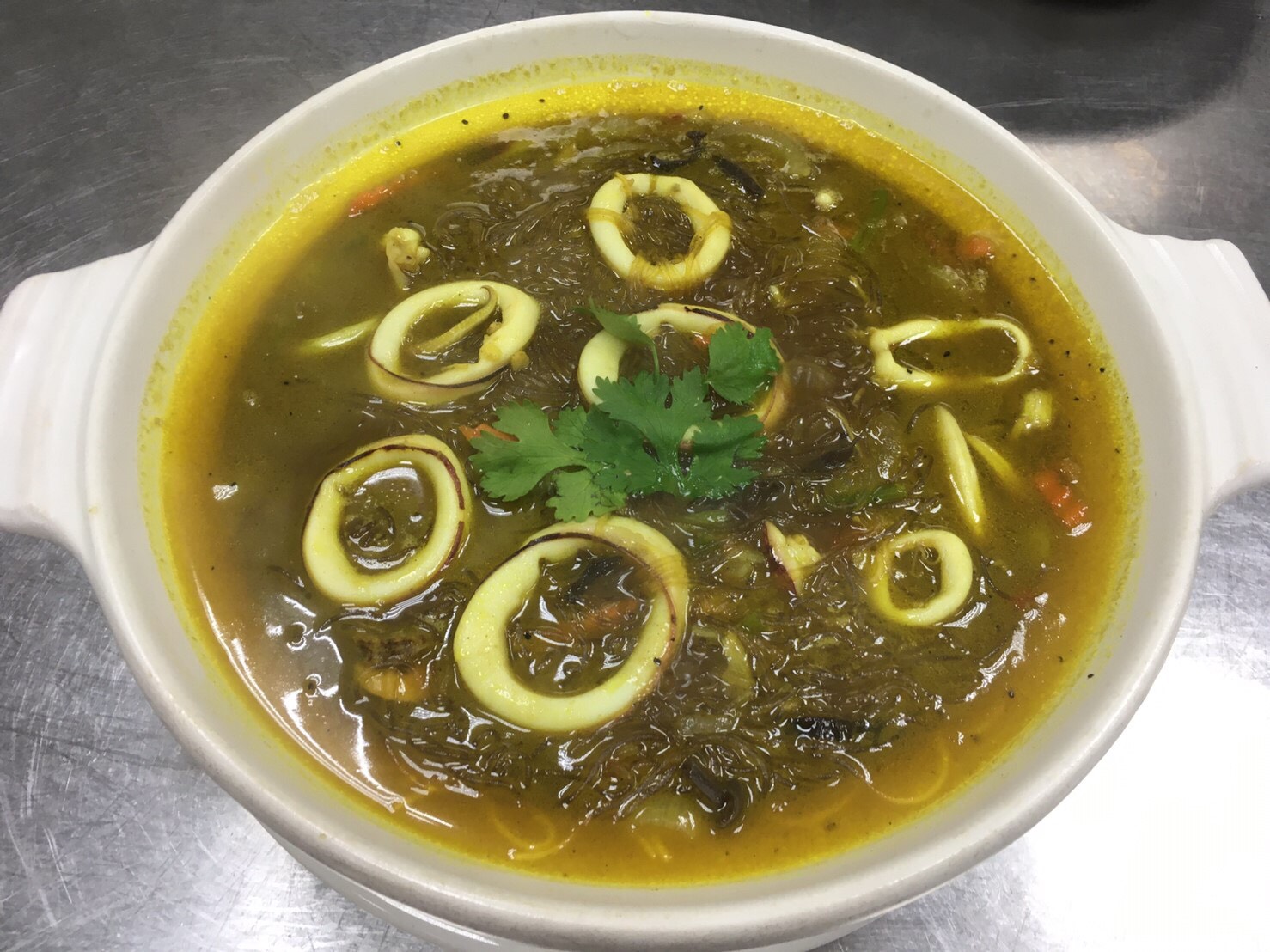 一說到咖哩,似乎總是會直接聯想到咖哩飯,但我們決定跳脫框架,讓咖哩和澎湖的海味也能變出新滋味!我們的咖哩粉絲煲,最注重的就是味道的和諧,調味的平衡,如何讓咖哩的味道不會過濃,而海鮮又能釋出最原味的鮮甜,靠的都是師傅們多年來的經驗,粉絲吸收了兩者的精華,濃郁的湯頭,配上吸附湯汁的粉絲,成為讓人難以忘懷好滋味。