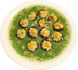 我們是一間在傳統與創新間肆意遊走超過20年的老店,透過料理讓生活更有意思,芙蓉蒸蛋釀百香菇,丸子內包覆現打的花枝漿,包裹外面干貝絲,並以綠色的波菜泥和鮮蝦小管切碎作為勾芡湯底,口感層次豐富給您原汁原味的鮮甜,不管是大人小孩,還是是對菠菜挑食的人,都能輕易的完美被他征服。融合了鮮香菇的彈牙,一口咬下還能同時吃到香菇溫潤的口感以及飽滿的海味哦!