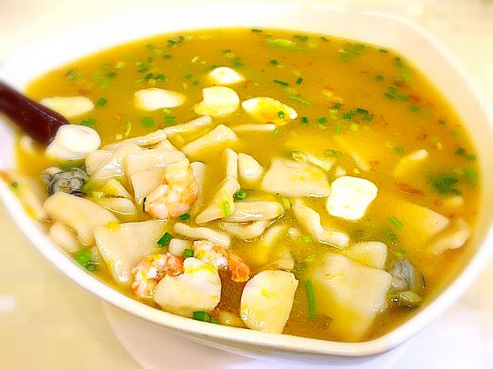 澎湖環境得天獨厚,空氣中飄散著海水的鹽味,栽植出的南瓜別具風味,香甜可口,將南瓜蒸熟並打成泥後,加入蝦、蚵等滿滿的海鮮一起熬煮,剛上桌時或許看起來不太起眼,但只要嚐下一口,南瓜的綿密口感、香甜滋味瞬間在嘴中化開,還有我們的麵疙瘩,慢慢咀嚼,這麵團的香氣,Q彈有嚼勁,那是讓人忍不住一碗又一碗的,留在記憶中的好味道。