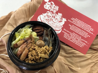 湖東社區的便當是在地媽媽們以自產的菜餚做季節性的搭配,每道料理都蘊藏著它的食材來源與常民故事,入口的菜餚夾雜著生活演進的苦澀味,主食是自產自曬的地瓜做成的蕃薯籤飯,配上手工醃製的花菜干炒肉片,潮間帶抓到的石鮔曬干來燉五花肉,自家菜宅無毒時令蔬菜,澎湖海域補撈經海風日曬後的魚脯,蔥爆剛補撈回來的新鮮小管,還有早期過年才可吃到的滷鵪鶉蛋。娓娓道來每道菜的生命故事,入口的菜餚頓時夾雜著生活演進的苦澀味,進到胃的路程剎時間也緩慢了許多。
