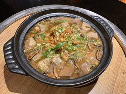 然而這次剛好運用到土魠魚特色料理,天然無汙染的土魠魚,就跟愛情一樣清澈透明。另外,放入芋頭剛好可以成為海與芋頭的戀愛,也就是戀,為了能讓海與芋頭的相依相惜,我們藉由了澎湖的另外一個特色名產「麵線」,來做為他們感情的那一條愛情線。