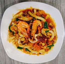 老闆娘於七年前一手創立這間走廊小天使咖啡餐廳,希望自己就像是澎湖的小天使一樣,帶給來用餐的在地居民或是外來的食客,最美味的餐點和最溫馨舒適的用餐環境。這道澎湖南瓜麵疙瘩,使用在地的南瓜金黃甜蜜,配上每日嚴選的優質海鮮加入我們手工麵疙瘩一同翻炒,美味無比。