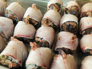 阿華的主廚一直在想要如何完美詮釋我們澎湖三金之首-土魠魚的美味,於是研發出純手工獨創的鮮蝦土魠魚卷。先將優質的整隻蝦剝殼去沙,再用主廚特製絞肉包裹,最後以新鮮土魠魚完整包覆,除了有蝦子的甜、絞肉的香,還有與舌頭第一接觸的土魠魚肉的鮮,彷彿感受到來自海洋贈予人類的美味禮物,一口一口,回味無窮。