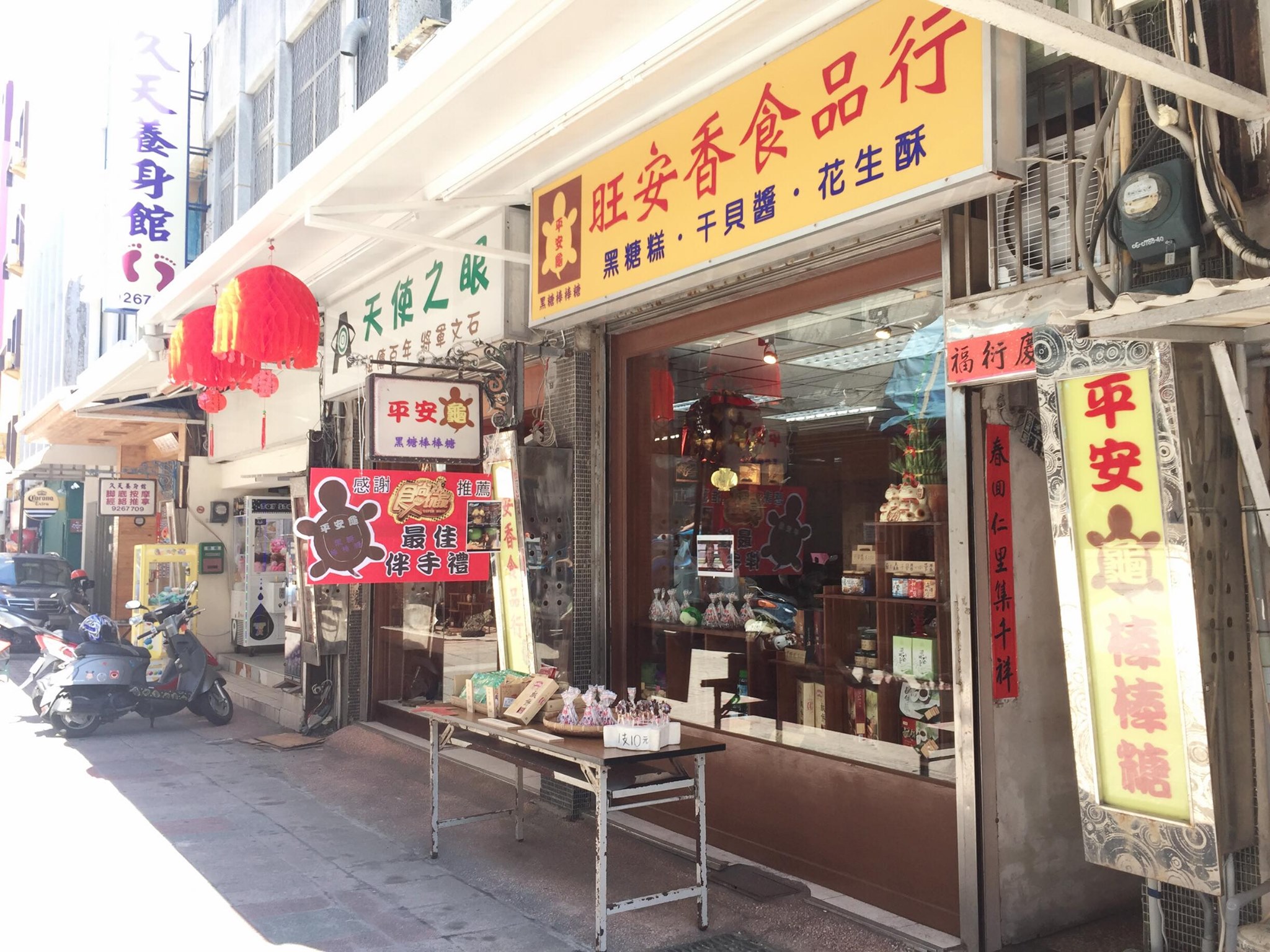望安鄉,一個位於北迴歸線南側,地處亞熱帶的島嶼。望安島沙灘附近的海域為綠蠵龜上岸產卵必經的水域。本公司已其命名(旺安香食品行)並製作出好吃又有趣的平安龜黑糖棒棒糖,讓各位旅客來澎湖旅遊之際,也能一同體會澎湖在地特色文化。