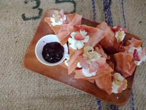 我們自己研發的仙人掌鬆餅是本店招牌,用鮮奶加上來自”刺夯手作”的仙人掌原汁製成,不加一滴水是我們的堅持。我們還會加仙人掌麻糬在上面點綴,除了美觀更是美味,最後旁邊再放一疊仙人掌果醬,酸甜滋味讓您愛不釋口。
