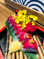 一群擁有理想抱負的日本料理師傅,聚集在澎湖開創夢想,不斷研發日式與澎湖在地食材融合的可能性,就是想要大家品嚐不一樣的澎湖日式料理。以土魠魚為中心,用日本捲壽司的方式包裹起來,上面再用澎湖火龍果點綴,顏色鮮豔、口感豐富。