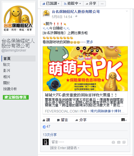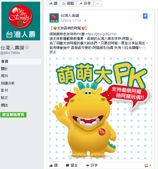 這兩週吉祥物PK之旅終於來到尾聲,真是辛苦各位拼命催票的朋友了,賽程中各隻以極接近的票數相互拉鋸,吉祥物的家人們真的卯足全力了阿。小編特別將各家催票的英姿做個整理與大家分享~