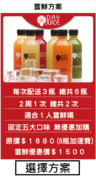 若選擇嘗鮮方案,則固定選擇五大口味(原味、紅棗、蘋果、蜂蜜檸檬醋、奇亞籽)