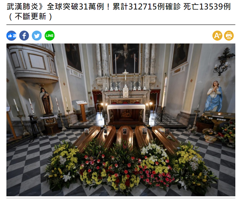 ▲武漢肺炎持續在全球擴散,義大利為死亡人數最多的國家。(美聯社)