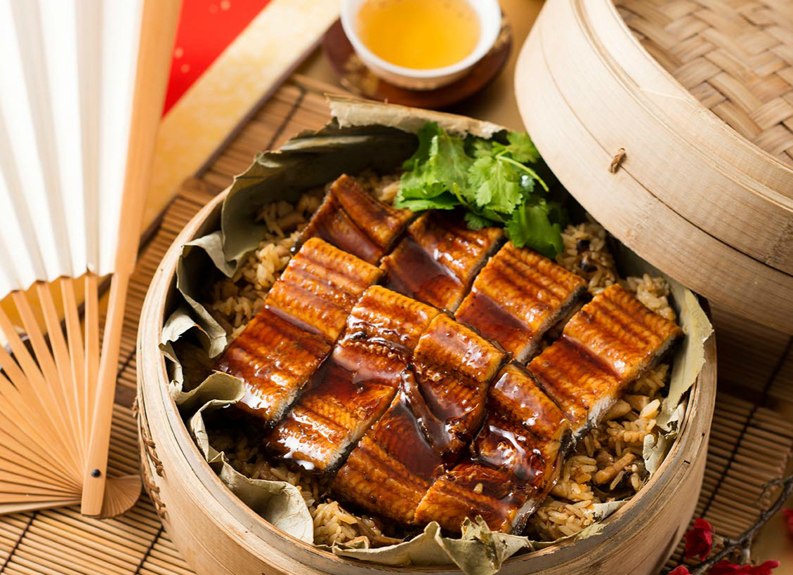 由廚藝功夫過人的賴忠舜主廚攜手陣容堅強餐廚團隊,薈萃大中華地區多元菜系,精彩獻上極致的滬杭滋味。該道華貴的「鰻魚蒸米糕」,特選台灣自產優質鰻魚及蓬鬆晶瑩的長糯米,拌攪爆炒過的五香肉絲、開陽、紅蔥頭等配料,香氣逼人,令人意猶未盡。