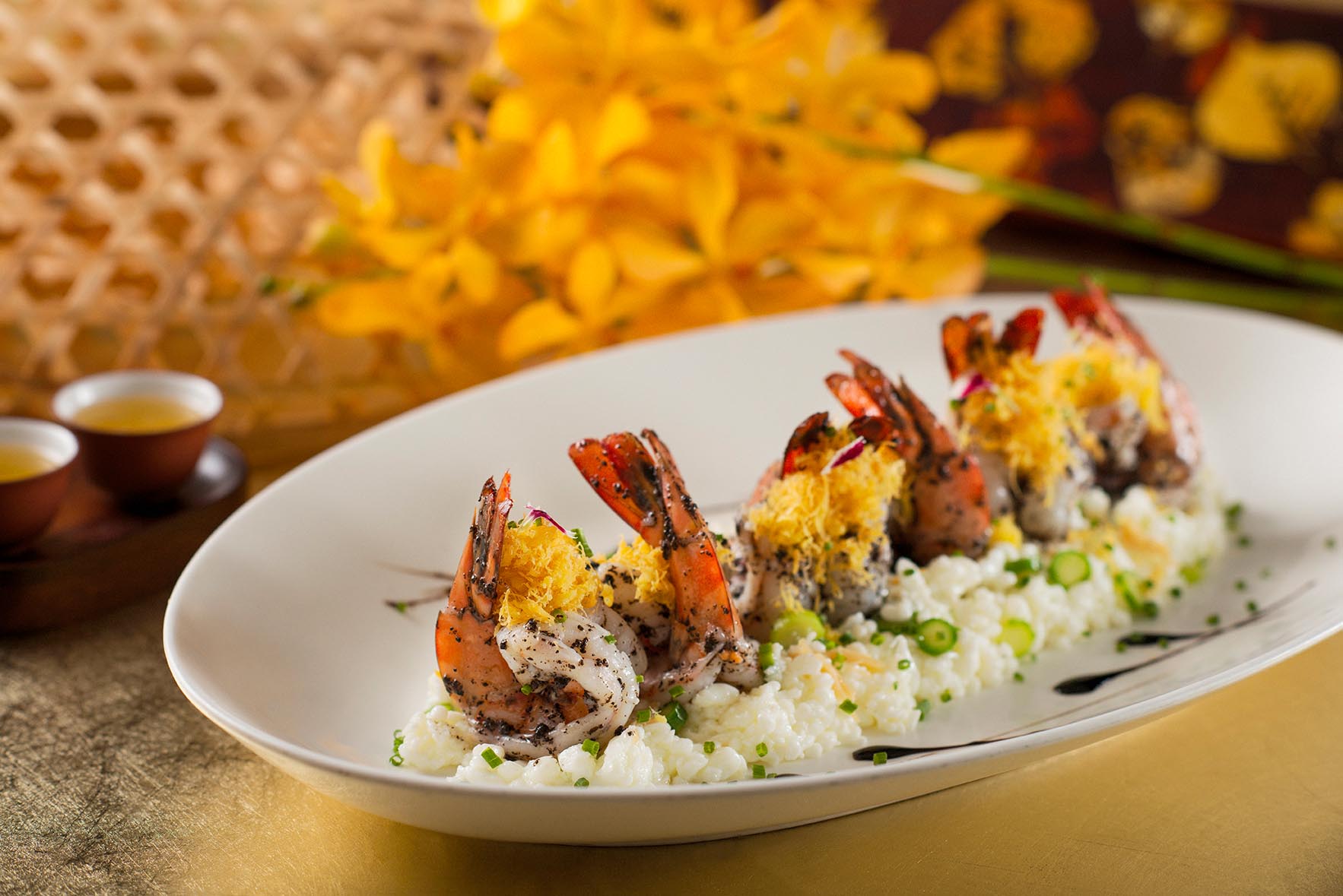 由港籍新任中餐行政主廚陳國華掌杓,引領廚藝精湛的料理團隊,以爐火純青的功夫手藝獻上米其林等級美饌,樣樣精烹細琢,其中「賽螃蟹金絲松露蝦球」,鮮美大蝦結合細緻炒蛋白,再以頂級松露的獨特香氣畫龍點睛,食藝堪稱絕頂。